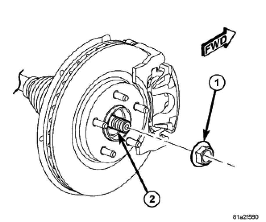 13. Install the hub nut (1) on the end of the half shaft (2) and snug it.
