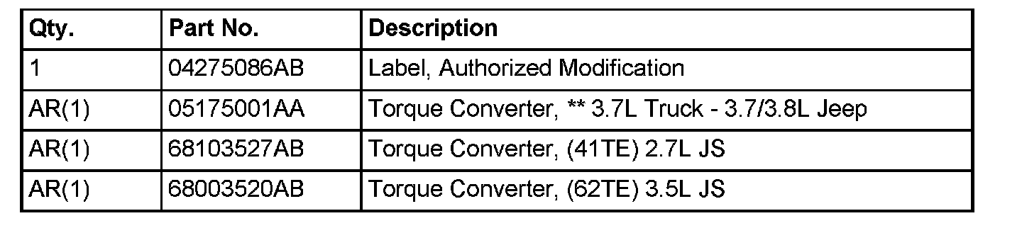 1. Replace the Torque Converter - Use the appropriate part number listed in the parts table above - Follow detailed service procedures listed in DealerCONNECT > TechCONNECT for Torque Converter replacement.
