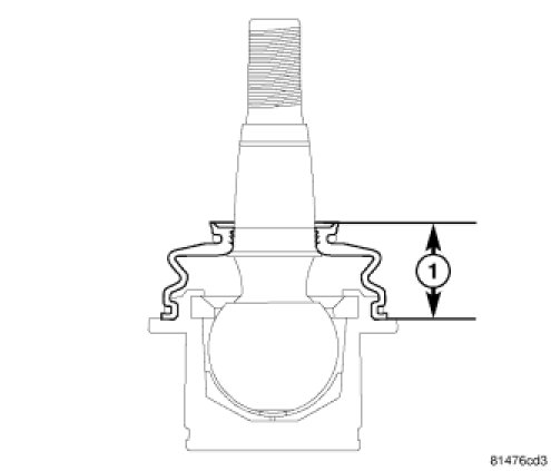- Measure ball joint seal boot height (1) making sure it is within specification.