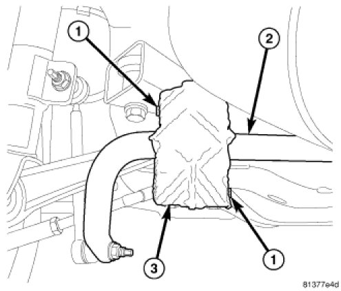 16. Install stabilizer bar heat shield (3) over stabilizer bar bushing retainer. Install mounting screws (1).