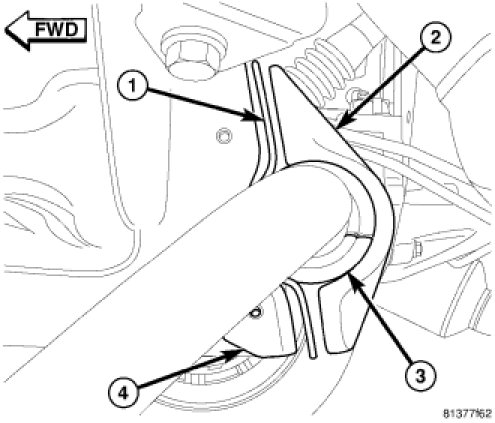 CAUTION: Because of stabilizer bushing outer shape, it is very important to install bushings in position discussed in following step.