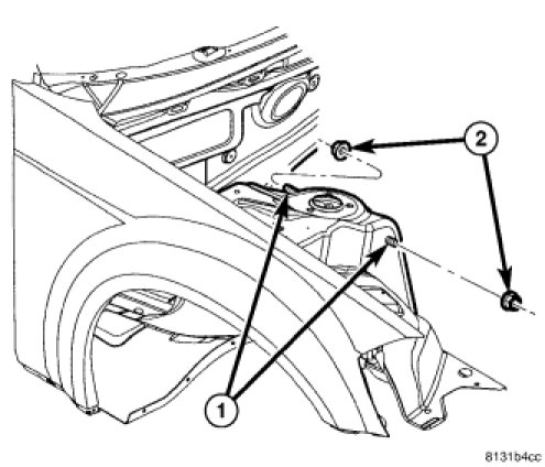 12. If installing left upper control arm, install coolant recovery container. Coolant Recovery Container - Installation
