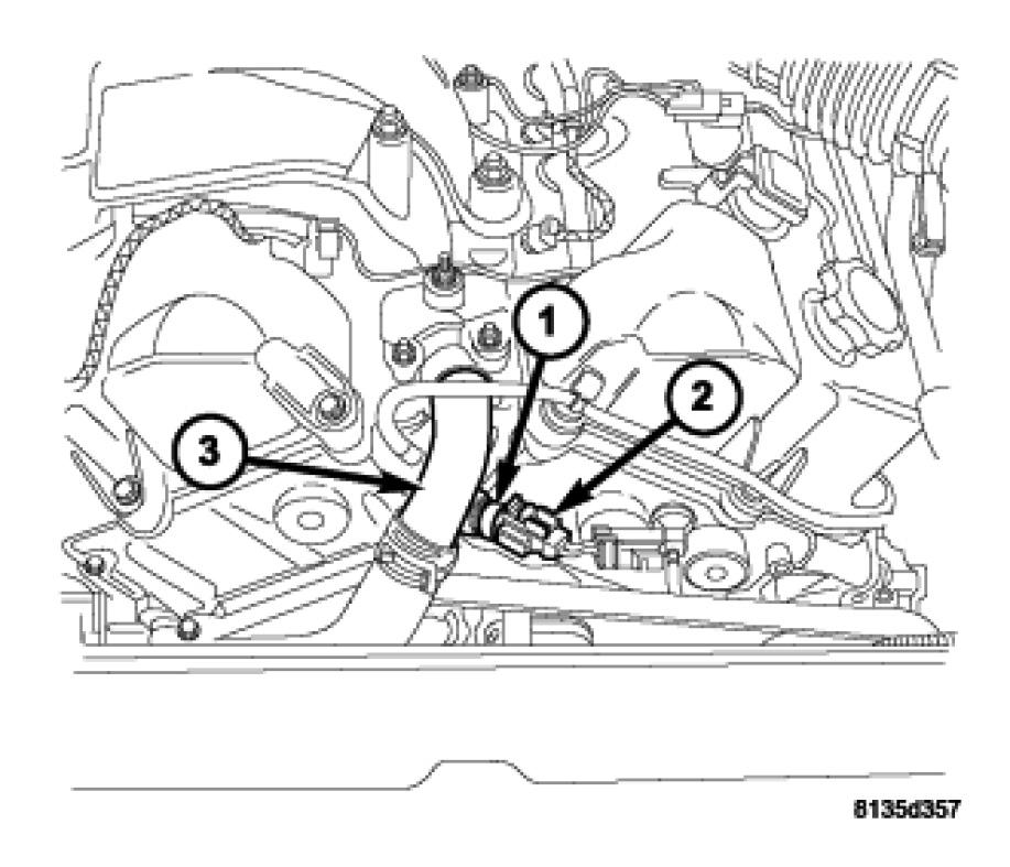 4. Remove engine coolant sensor (1) from coolant outlet tube (3).