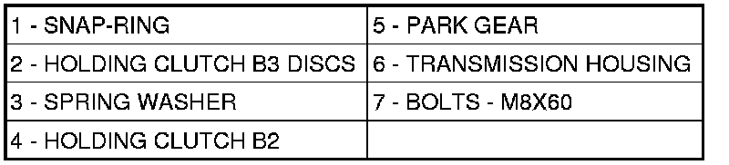 32. Remove multiple-disc holding clutch B2 (4) from transmission housing. The externally toothed disc carrier for multiple-disc holding clutch B2 is also the piston for multiple-disc holding clutch B3.