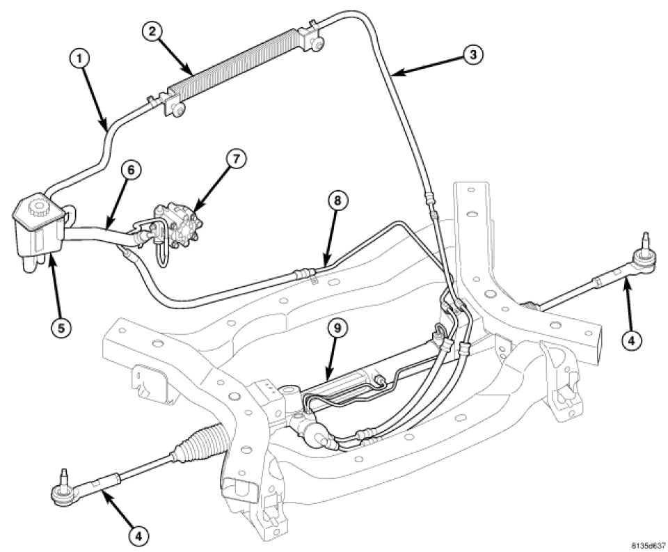 - Pump pressure (9), return (1&3) and supply (7) hoses
