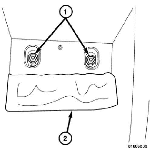 5. Lift the carpeting (2) at the rear of the rear stowage compartment.