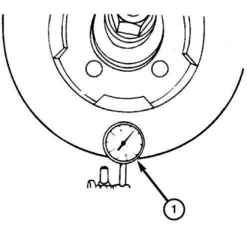 Use a dial indicator (1) to check rotor lateral runout. Maximum allowable lateral runout is 0.003 in. (0.76 mm).