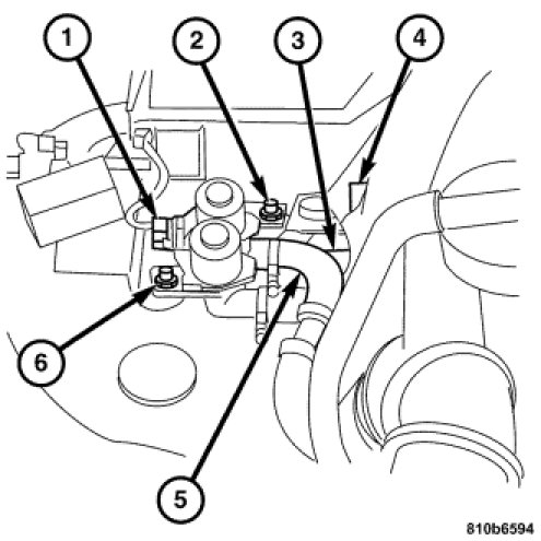 4. Install the heater water hose (2).