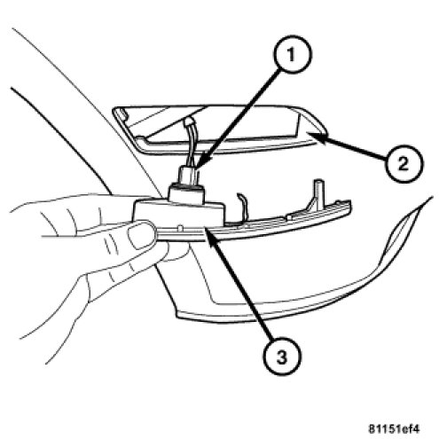 1. Insert the front marker bulb into the socket (1) and rotate clockwise into the front marker lamp lens (3).