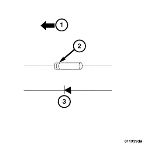 Remove the diode from the harness, pay attention to the current flow direction(1).
