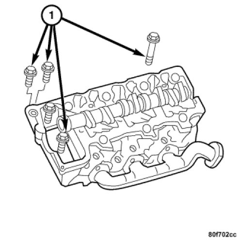 1. Install, but do not tighten the cylinder head bolts (1).
