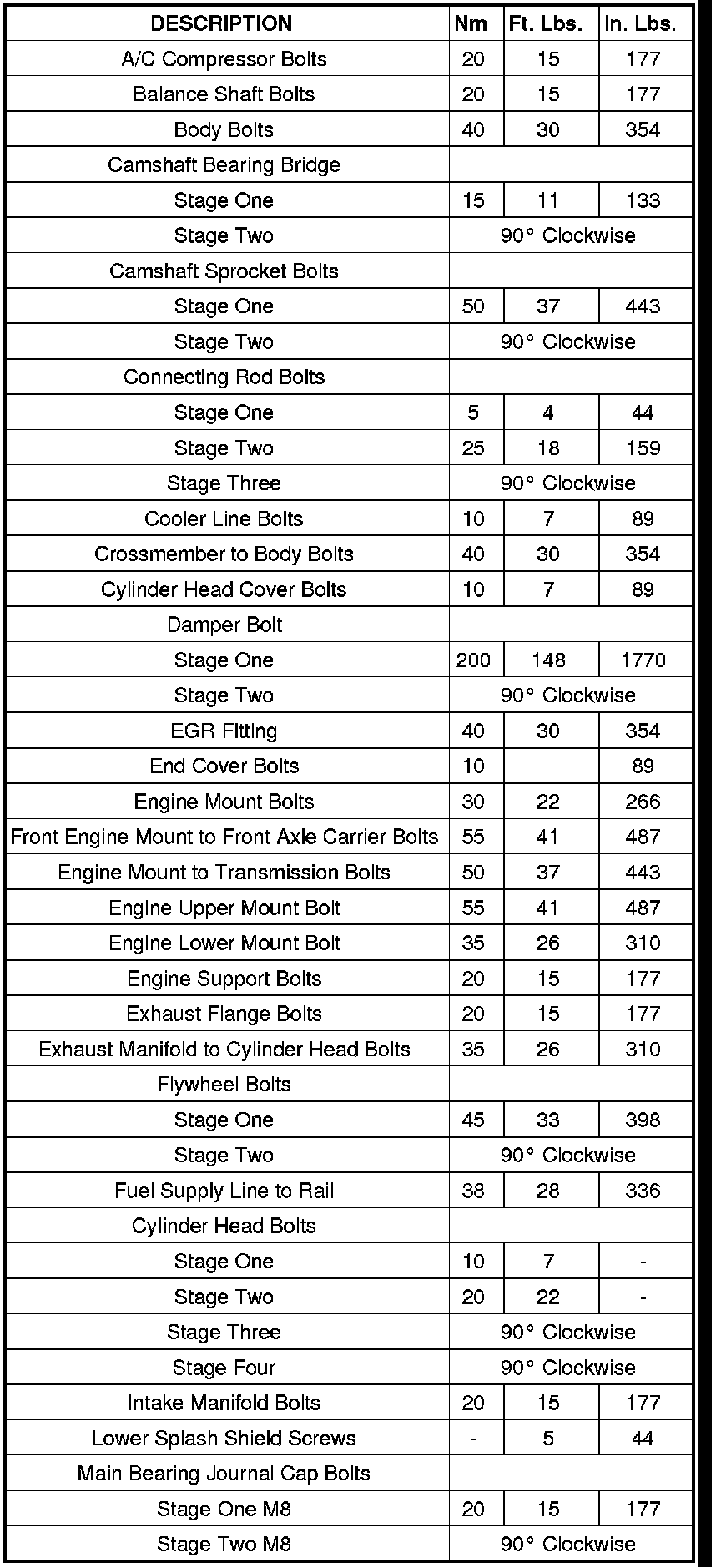 Engine Torque Specifications