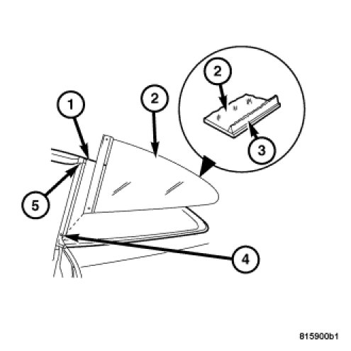 1. Clean inside of glass (2) with Mopar Glass Cleaner and lint-free cloth.