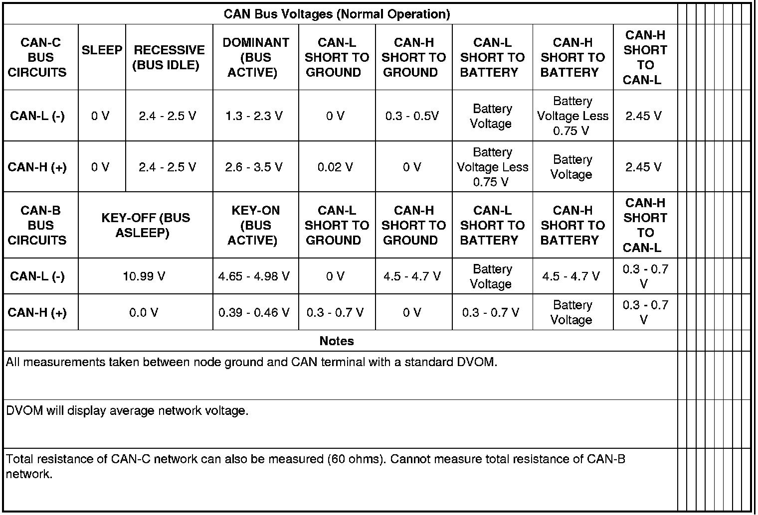 NOTE: Termination resistance of a CAN-B node cannot be verified with a Digital Multi-Meter (DMM) or Digital Volt-Ohm Meter (DVOM). The transceiver of each CAN-B node connects to termination resistors internally. When the vehicle battery is disconnected, the internal connections of all CAN-B node transceivers are switched open, disconnecting the termination resistors. Therefore, the total bus resistance measured under these conditions will be extremely high or infinite, which does not accurately reflect the actual termination resistance of the CAN-B bus.