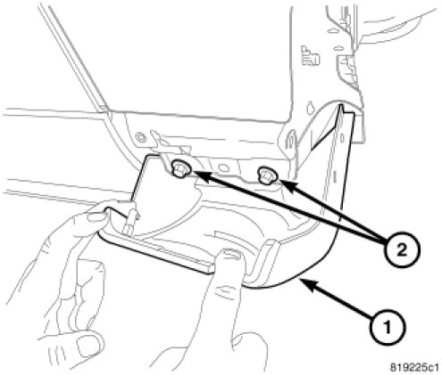 6. Pull down applique (1) exposing fender attaching screws (2).