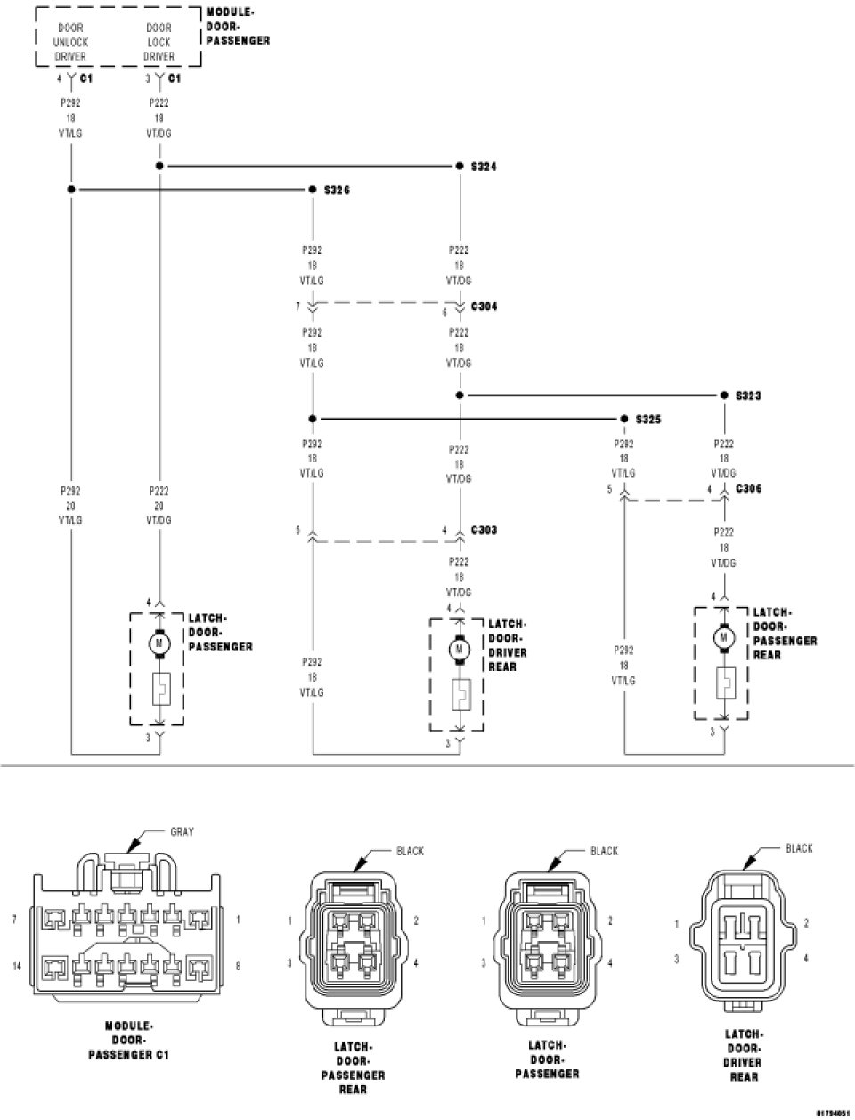 Disconnect the Passenger Door Module "C1" connector.