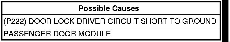 - Repair the (P222) Door Lock Driver circuit for a short to ground.