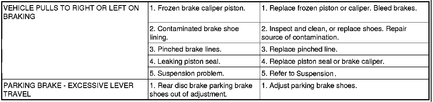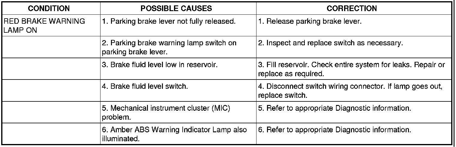 NOTE: There are three diagnosis charts following that cover the RED BRAKE WARNING INDICATOR LAMP, BRAKE NOISE and OTHER BRAKE CONDITIONS.
