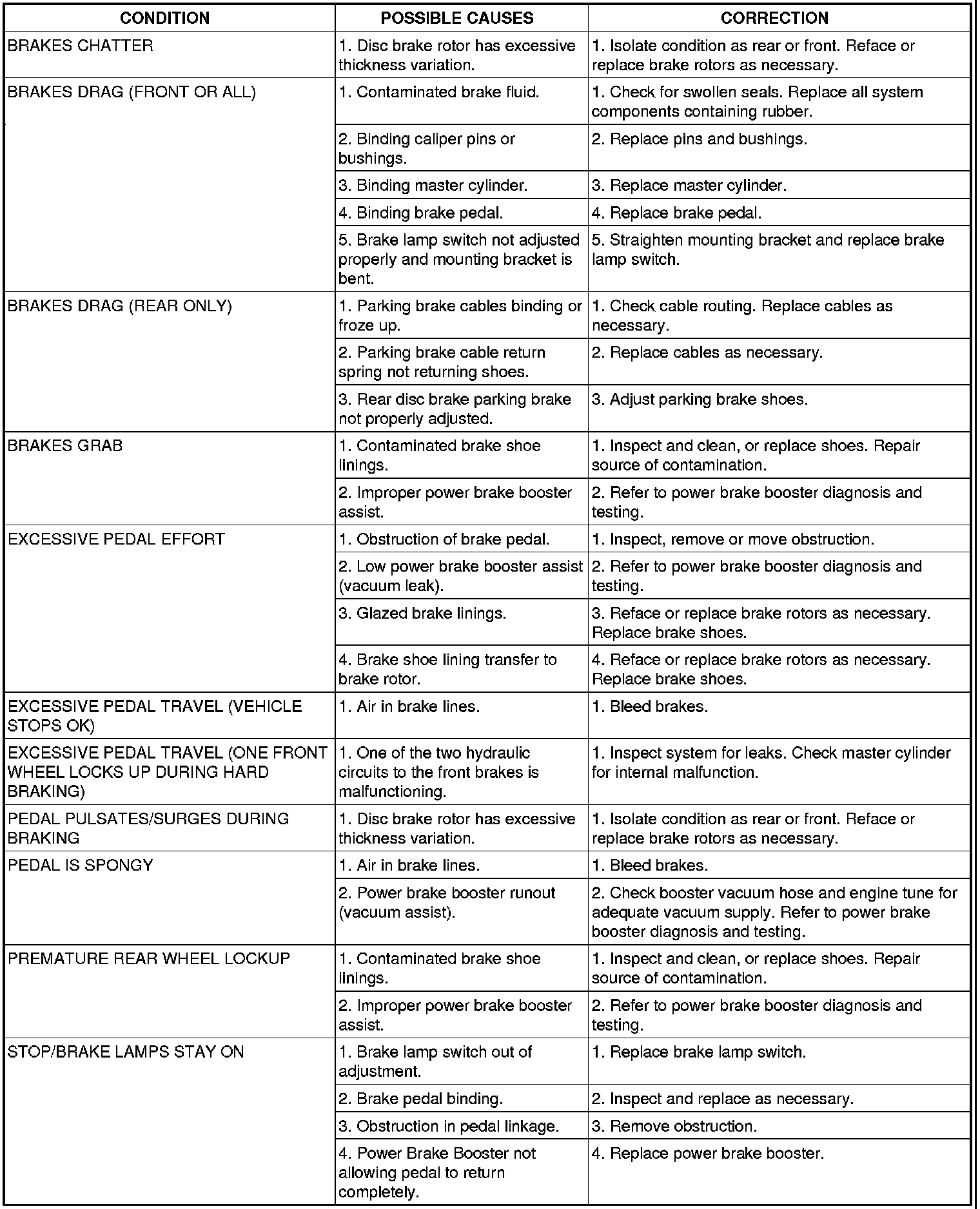 OTHER BRAKE CONDITIONS