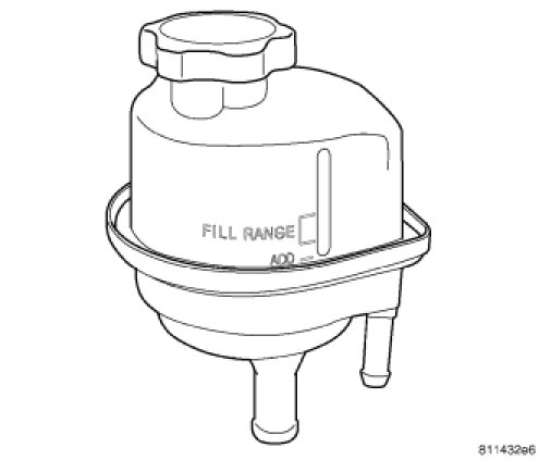 The fluid level can be read on the exterior of the power steering fluid reservoir. The fluid level should be within the "FILL RANGE" when the fluid is at normal ambient temperature, approximately 21°C to 27°C (70°F to 80°F).