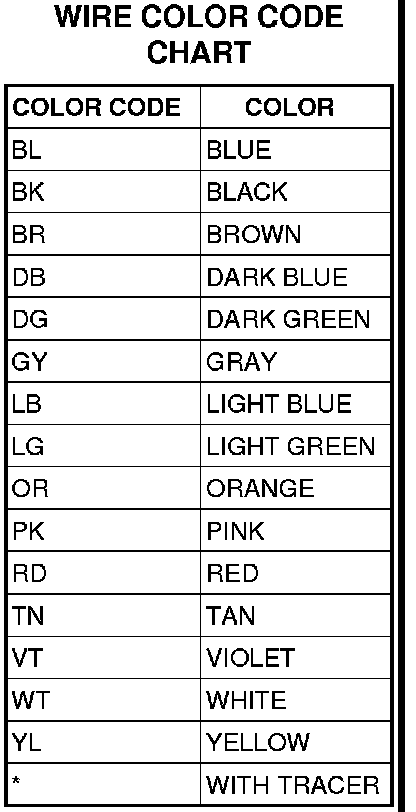 Each wire shown in the diagrams contains a code which identifies the main circuit, part of the main circuit, gage of wire, and color.