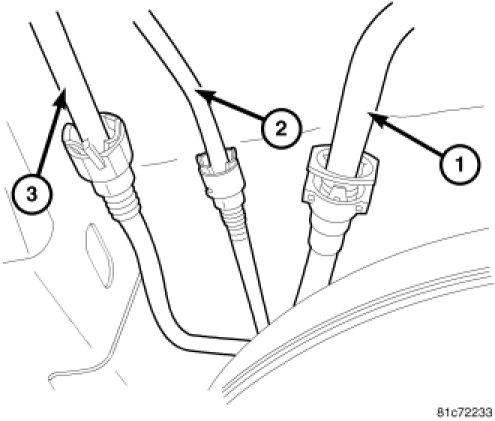 7. Connect EVAP vapor line (3) at the right front of fuel tank.