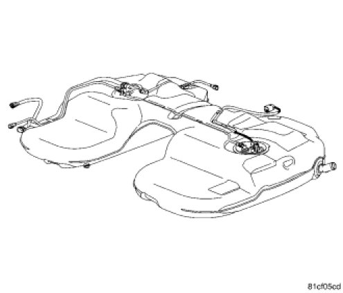WARNING: Support fuel tank with a transmission jack or equivalent. Use straps to secure the fuel tank to the jack. Failure to properly support and secure the fuel tank during removal may cause fuel to spill or fuel tank to fall from jack assembly.