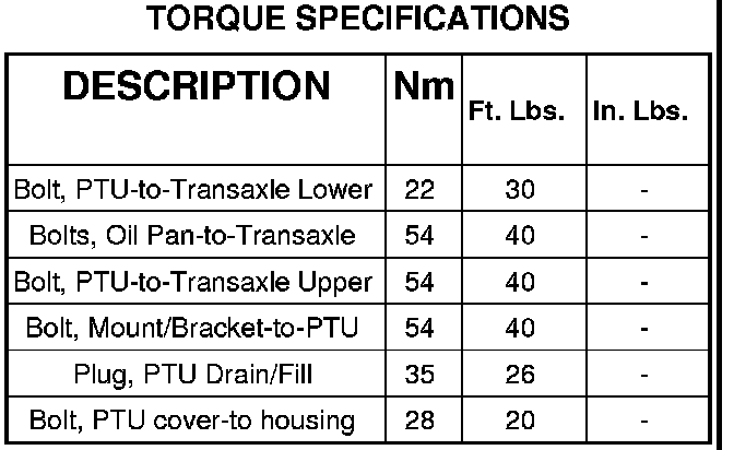 SPECIFICATIONS - POWER TRANSFER UNIT