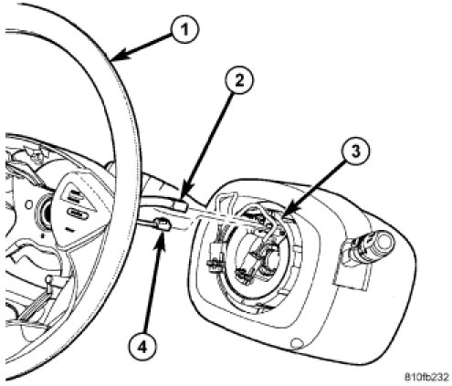 5. Disconnect speed control wiring connector (2) at clockspring (3) (center terminal).