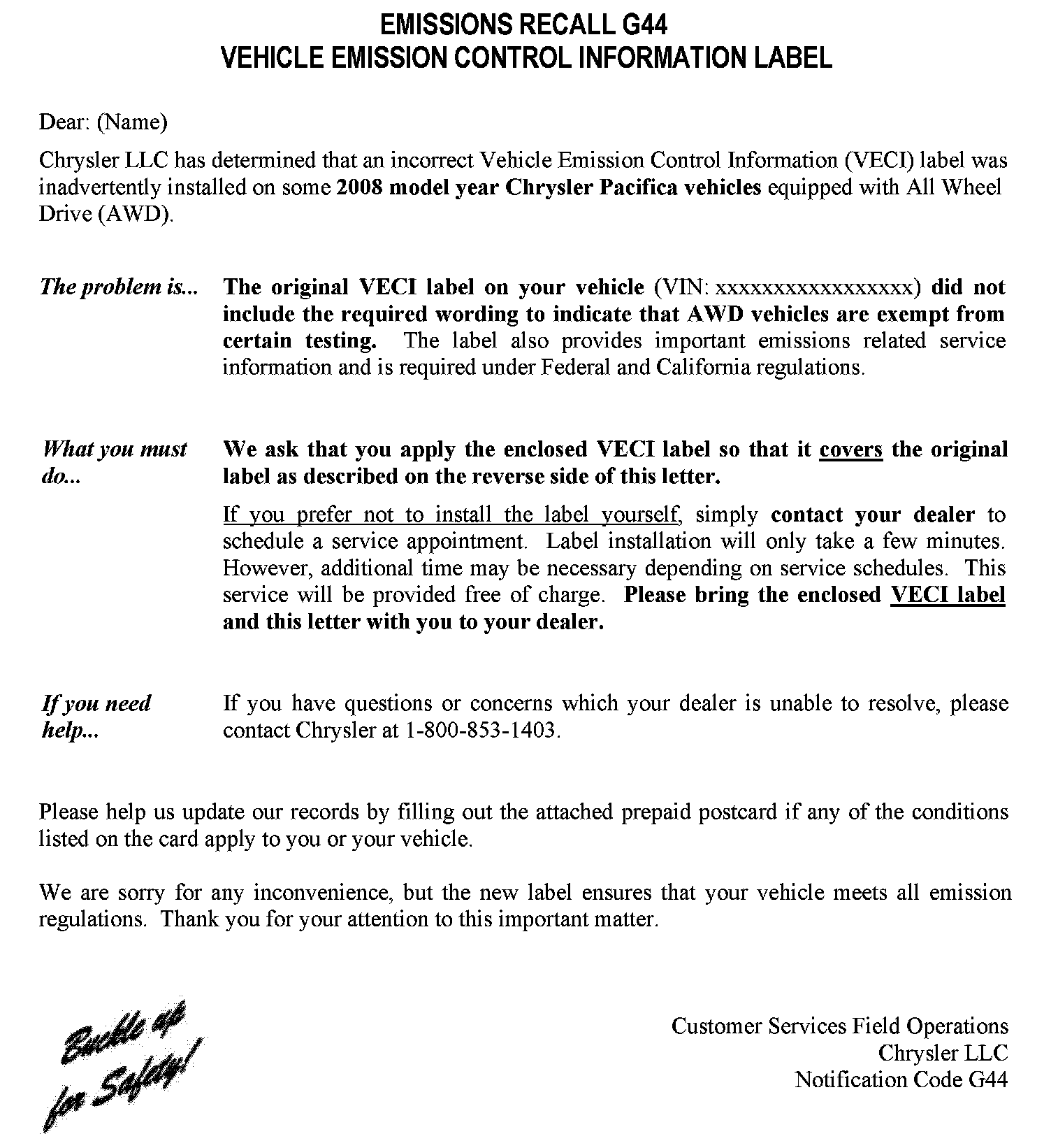 Recall - Incorrect VECI Label Installed at Production