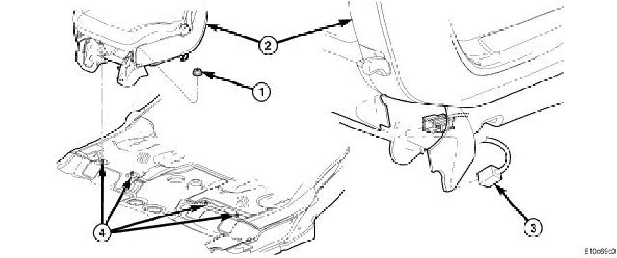 3. Install two nuts attaching seat to floor pan. Tighten nuts to 54 Nm (40 ft.lbs) torque.
