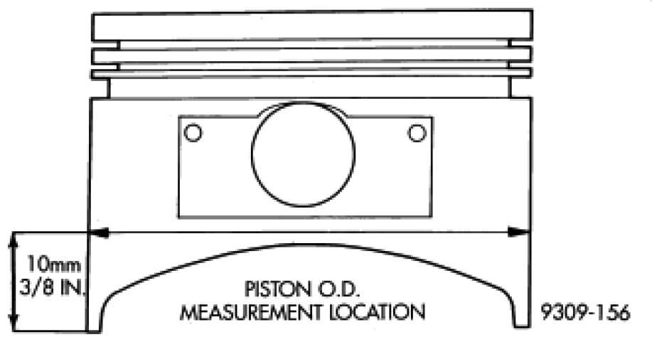 Piston and cylinder wall must be clean and dry. Piston diameter should be measured 90 degrees to piston pin at size location shown in. Cylinder bores should be measured halfway down the cylinder bore and transverse to the engine crankshaft center line Engine Specifications. Pistons and cylinder bores should be measured at normal room temperature, 70°F (21°C).