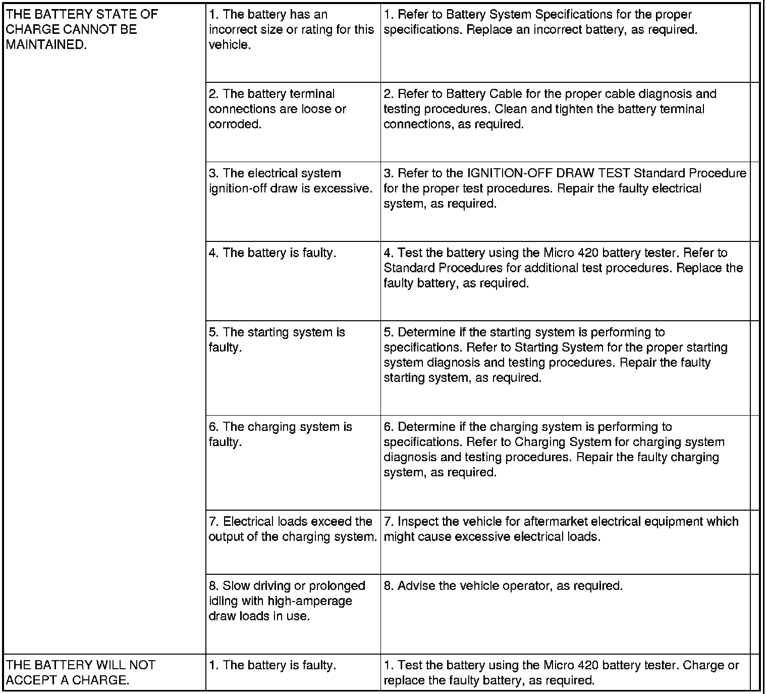 The Micro 420 automotive battery tester is a special service tool, designed to help the dealership technician diagnose the cause of a defective battery. Follow the instruction manual supplied with the tester to properly diagnose a vehicle.