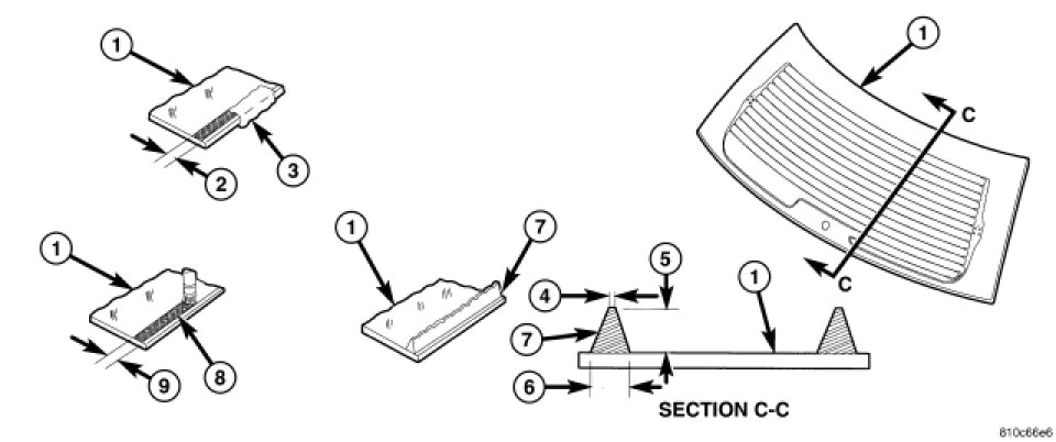2. Verify the glass lays evenly against the pinch weld fence at the sides, top and bottom of the replacement liftgate glass. If not, the fence must be formed to the shape of the new glass.