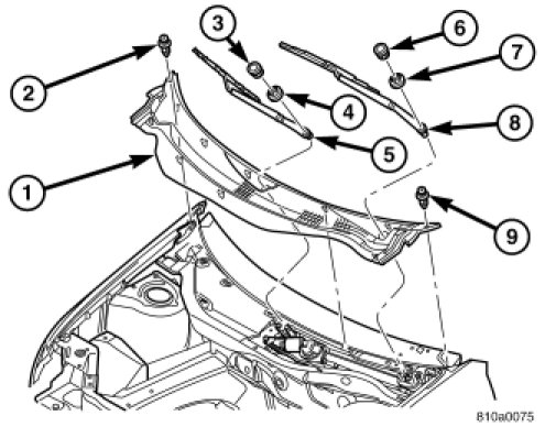 1. Position the wiper arm (5 or 8) onto the wiper arm pivot in approximate position with the tips of the wiper blades on the tick marks at the bottom of the windshield.