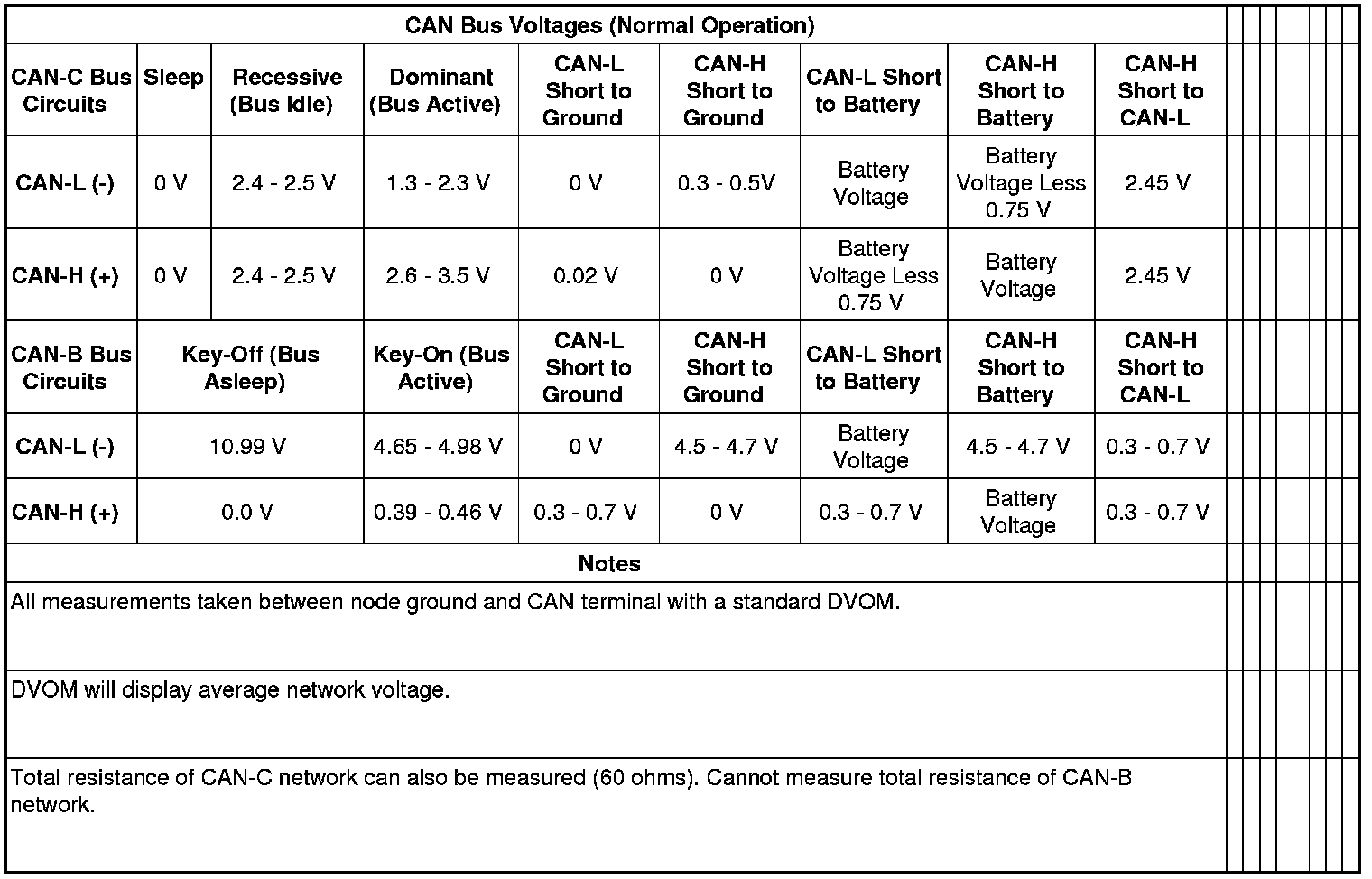 NOTE: Termination resistance of a CAN-B node cannot be verified with a Digital Multi-Meter (DMM) or Digital Volt-Ohm Meter (DVOM). The transceiver of each CAN-B node connects to termination resistors internally. When the vehicle battery is disconnected, the internal connections of all CAN-B node transceivers are switched open, disconnecting the termination resistors. Therefore, the total bus resistance measured under these conditions will be extremely high or infinite, which does not accurately reflect the actual termination resistance of the CAN-B bus.