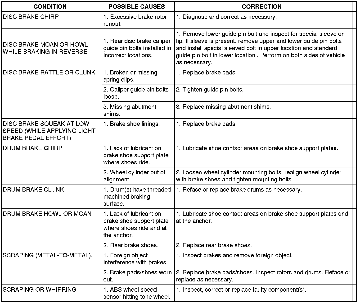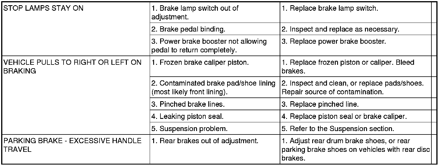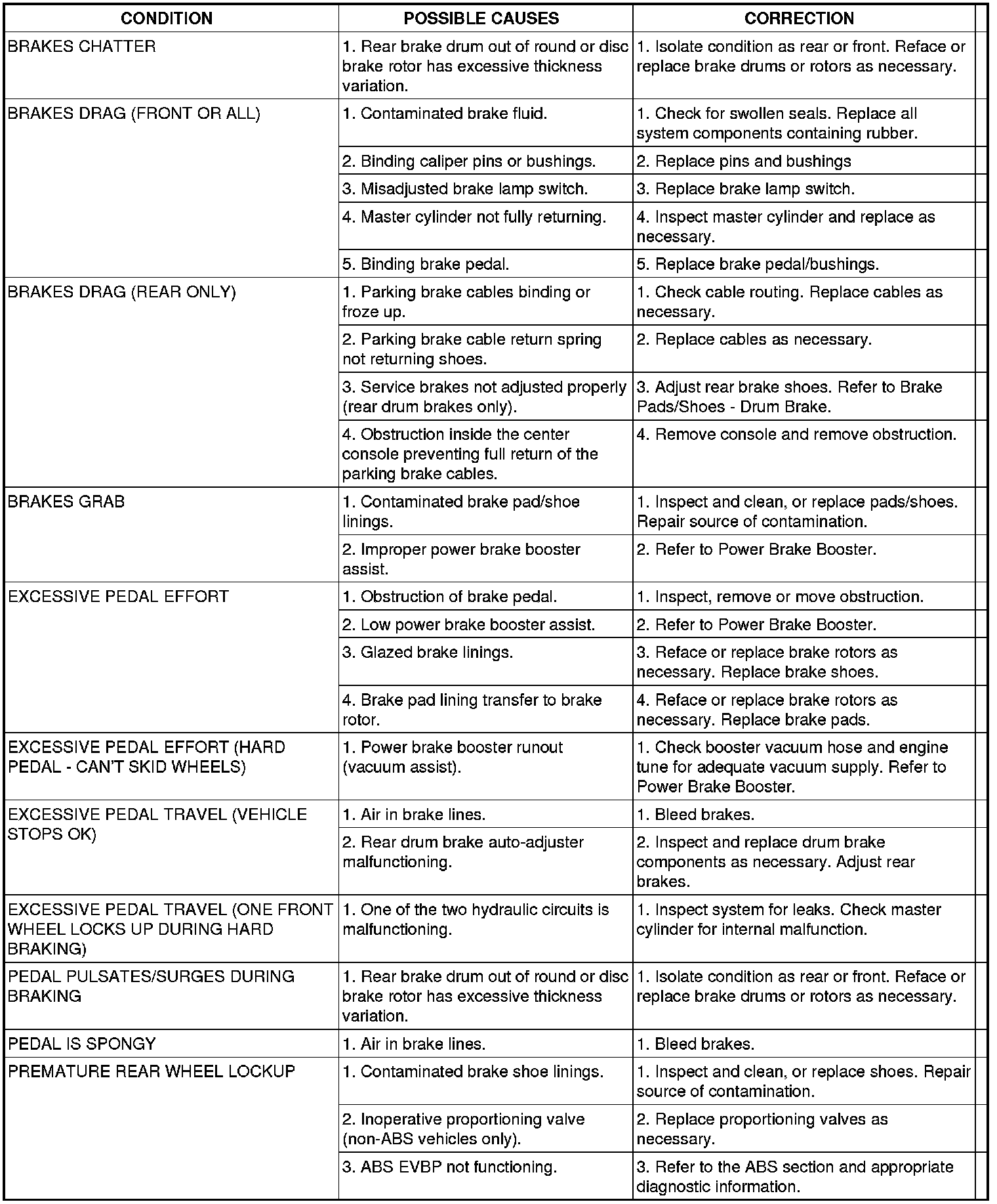 BASE BRAKE SYSTEM DIAGNOSIS CHARTS