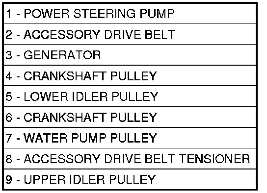 Accessory drive belt tension for all engines is maintained by a non-adjustable automatic drive belt tensioner.