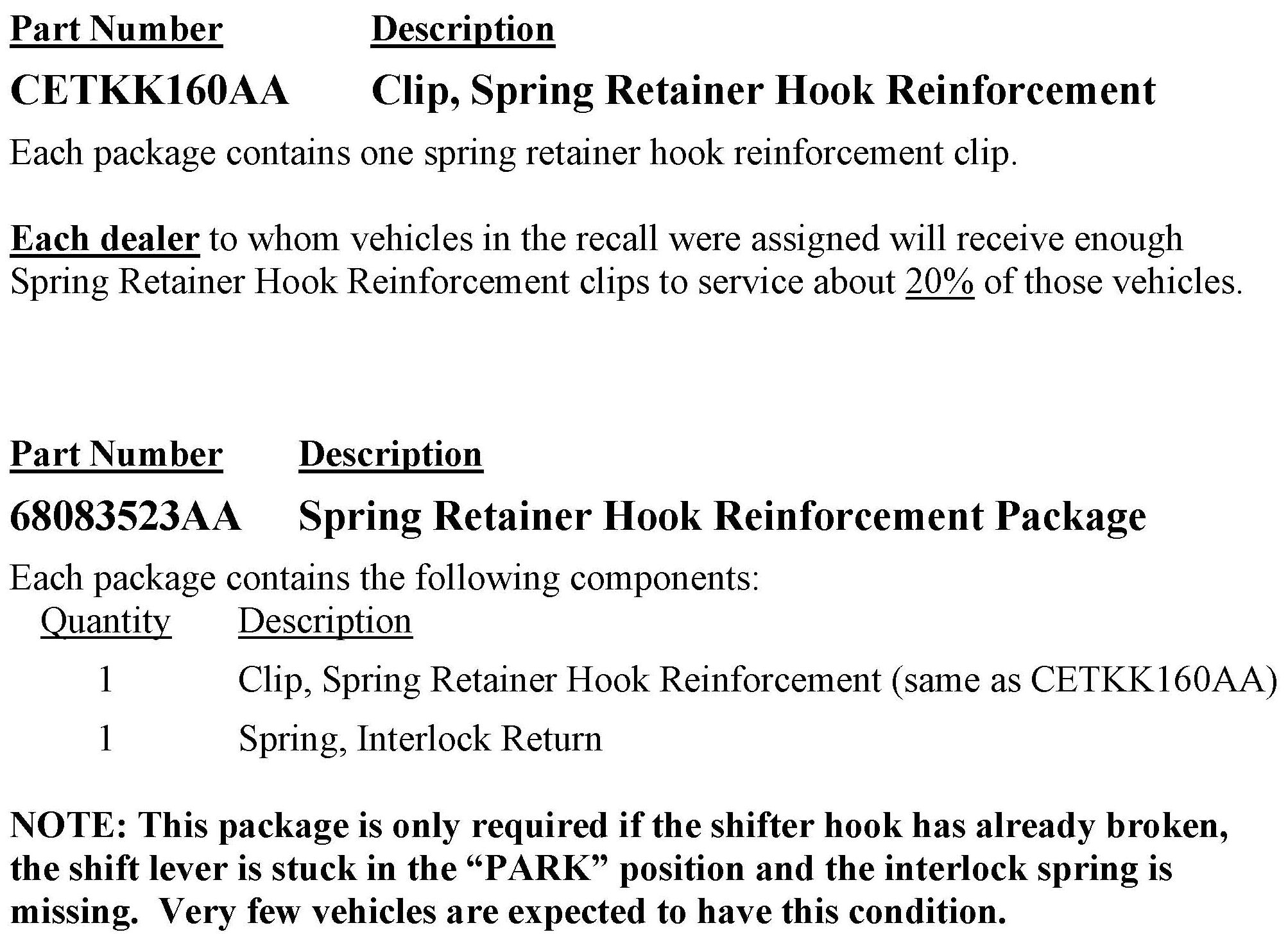 The transmission gear shift lever interlock spring retainer hook on about 278,000 of the above vehicles may break. A broken interlock spring retainer hook will result in the inability to move the gear shift lever out of the "PARK" position.