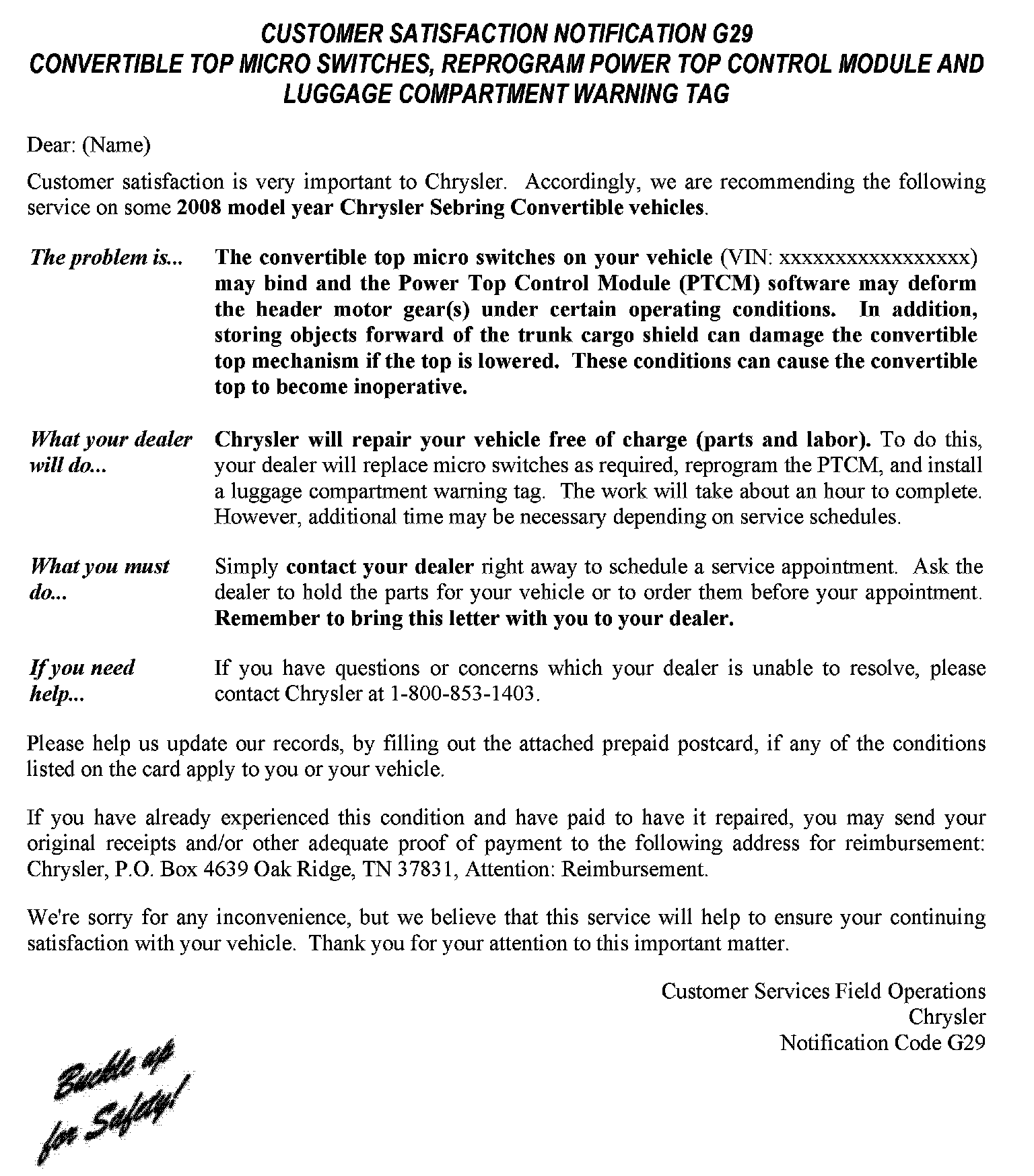 Campaign - Convertible Top Micro Switch/Software Update
