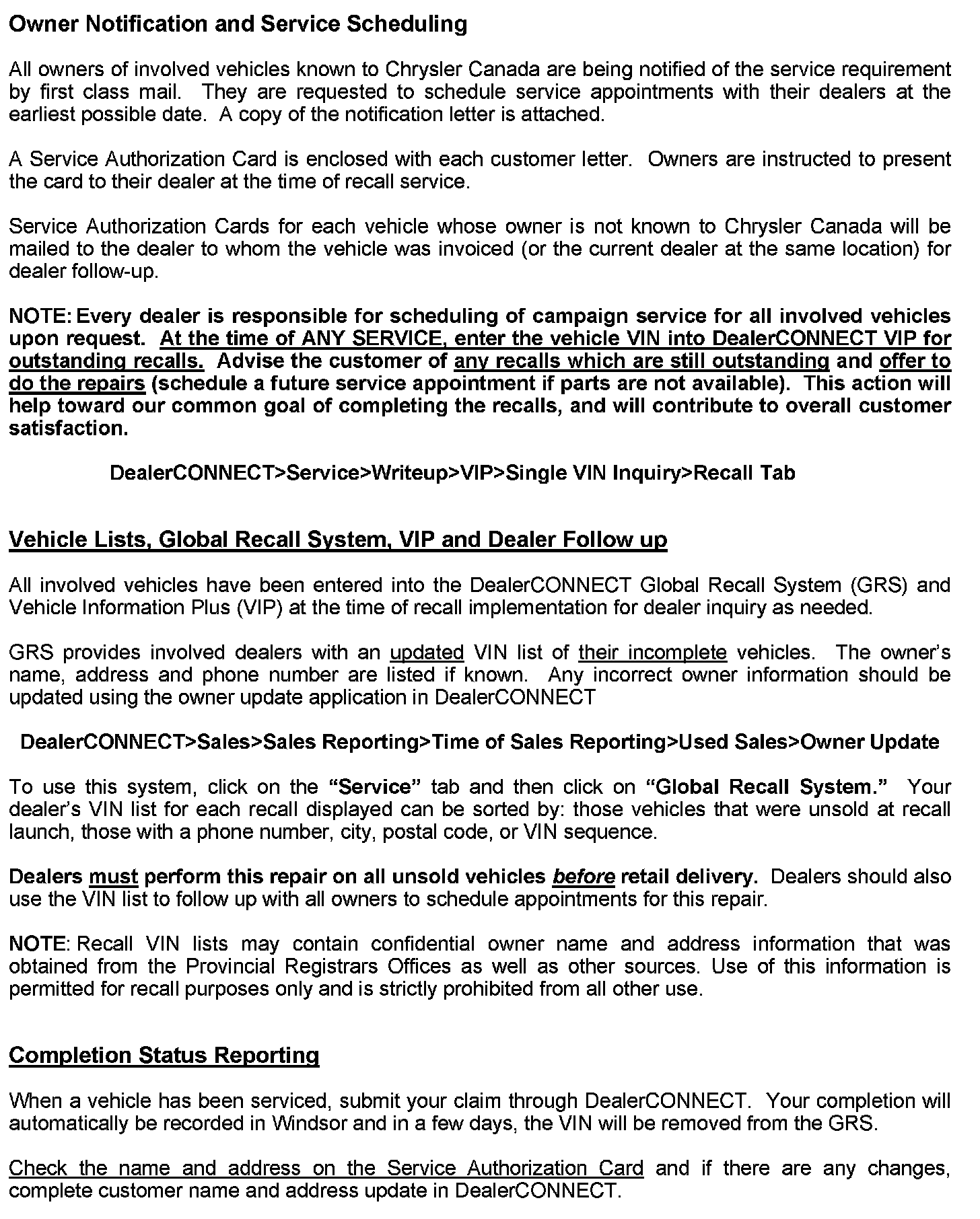 This Canadian Recall Notification can also be found in DealerCONNECT - See below: