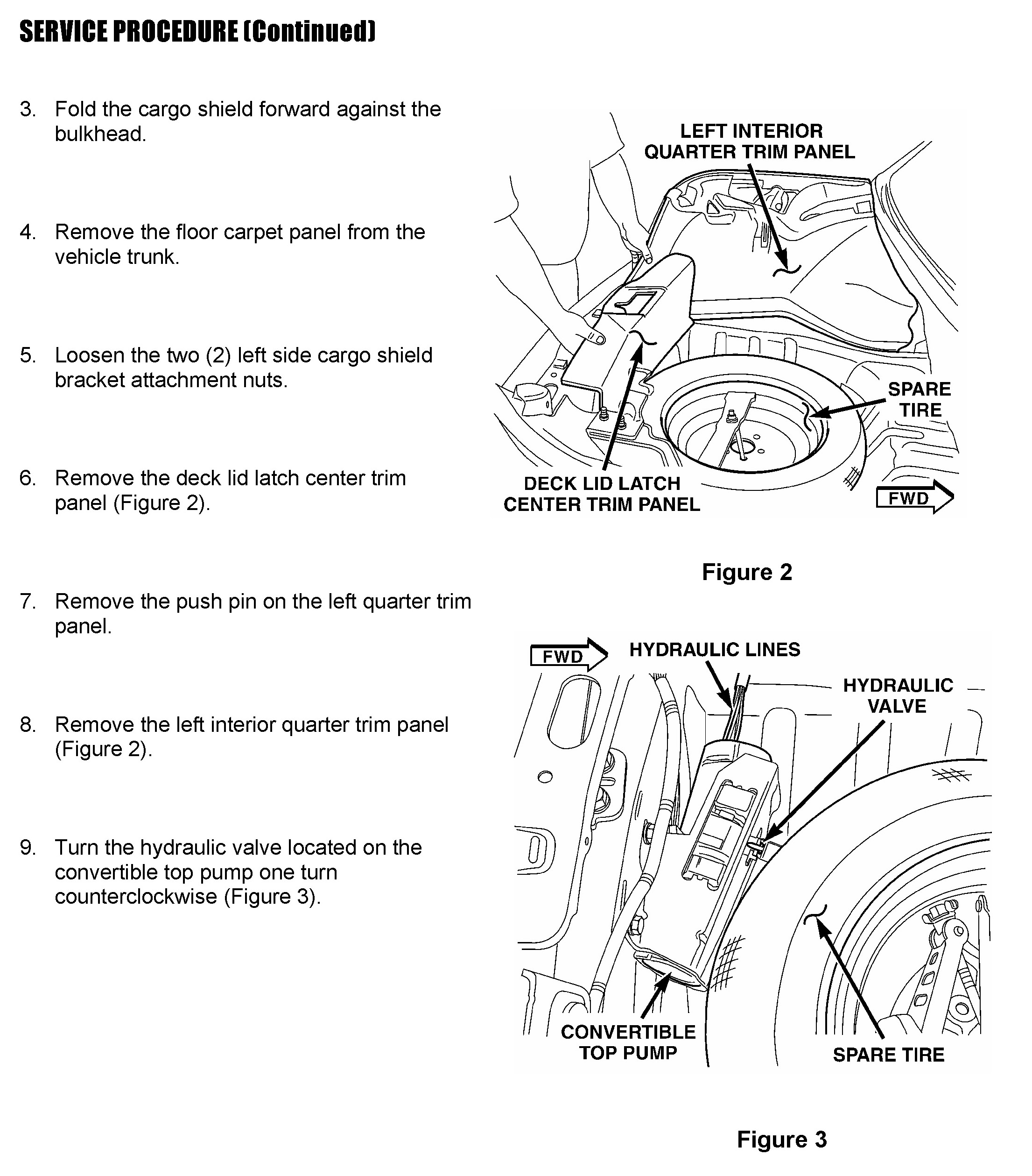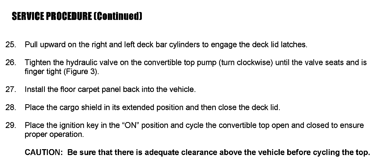 ^ The convertible top micro switches on about 1,250 of the above vehicles may bind and the Power Top Control Module (PTCM) software may deform the header motor gear(s) under certain operating conditions. In addition, storing objects forward of the trunk cargo shield can damage the convertible top mechanism if the top is lowered. These conditions can cause the convertible top to become inoperative.