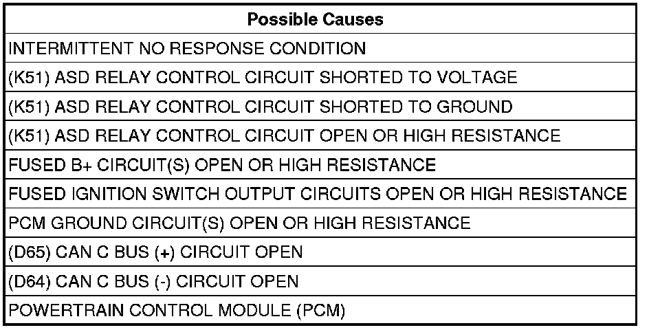 - Repair the (K51) ASD Relay Control circuit for a short to ground.