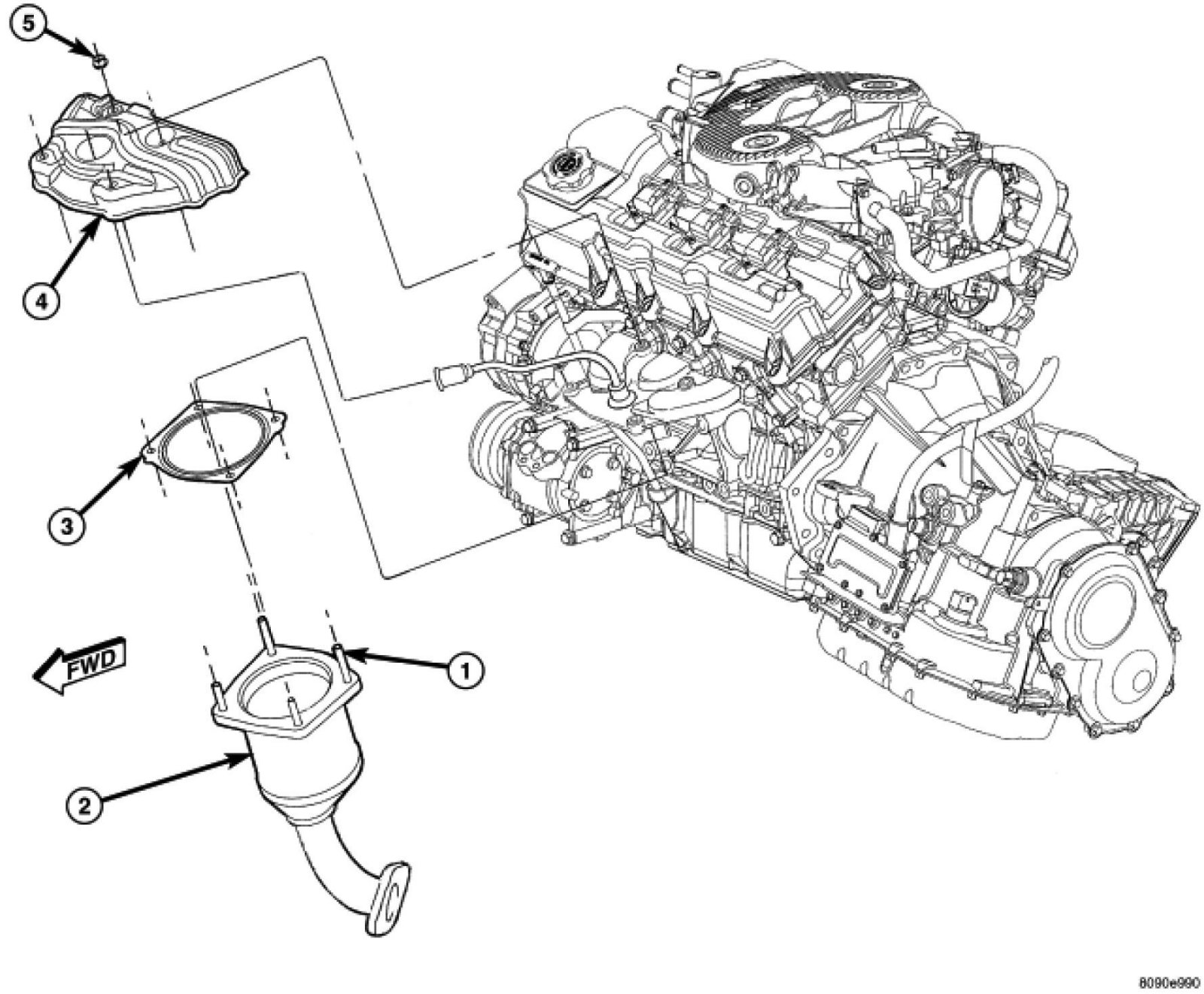5. Install 3 nuts attaching converter to manifold. Tighten nuts to 28 Nm (250 in. lbs.).