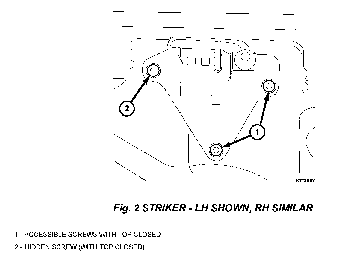 3. Loosen the 3 striker attachment screws on each striker, (one per side) (Fig. 1).