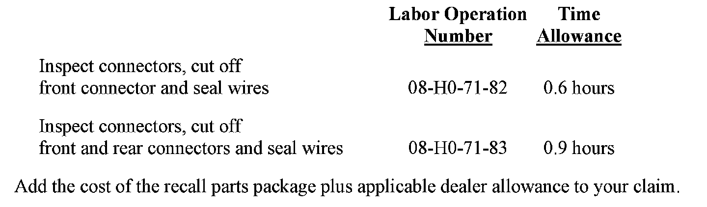 Recall - Tire Pressure Monitor Electrical Connectors: Overview