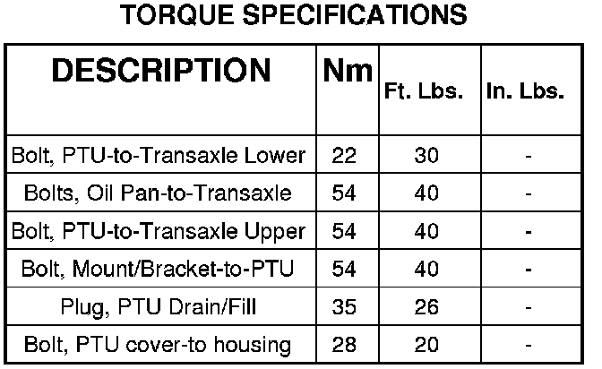 SPECIFICATIONS - POWER TRANSFER UNIT