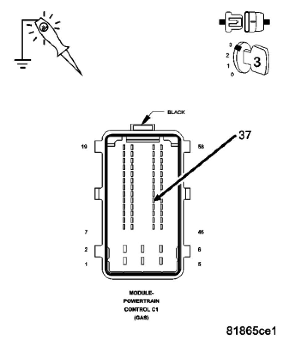 NOTE: When checking circuits at the Powertrain Control Module (PCM), be careful not to damage or distort the connector terminals. Improper measurement technique could result in poor pin to terminal contact.