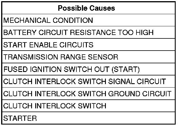 - Repair the Clutch Interlock Switch signal circuit.