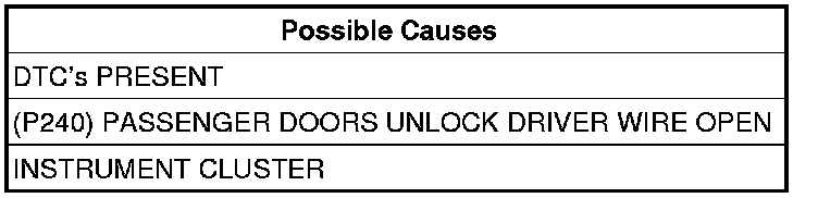 - Repair the (P240) Passenger Doors Unlock Driver wire for an open.